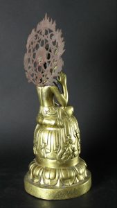 Gilded copper Maitreya Buddha with glory. Very attractive Great craftmanship.