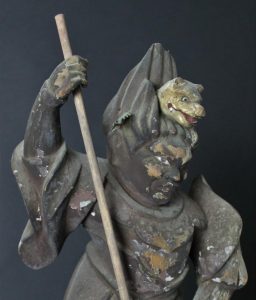 Mid Edo around 1750 He wears a Tiger in his hair. Missing a part of his foot and headpieces.